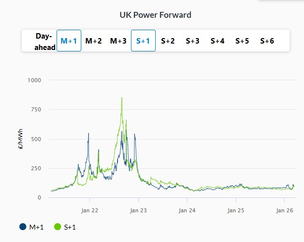 On Thursday, British day-ahead electricity price rose by 0.6% to 56.44 GBP/MWh, driven by lower renewable generation. Further along the curve, the Summer-2026 contract gained 2.8% to 95.91 GBP/MWh, following higher gas prices.