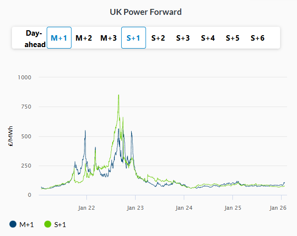 UK spot power price rallied by 9.7% to close at 97 GBP/MWh, supported by reduced renewable generation. Further out on the curve, the Summer 2026 contract slipped by 0.6% to settle at 75.94 GBP/MWh, following weakness in gas markets.