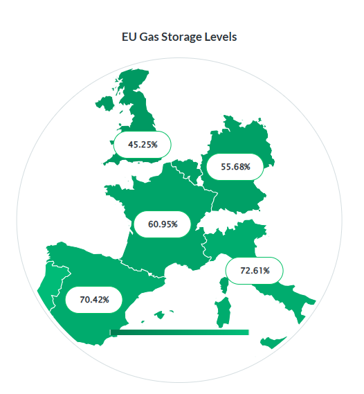 The UK day-ahead power price plunged more than 29% to 83.50 GBP/MWh, driven by higher wind generation across the country. Further along the curve, the Summer 2026 contract dropped by 2% to close at 69.23 GBP/MWh, following weaker gas market trends.